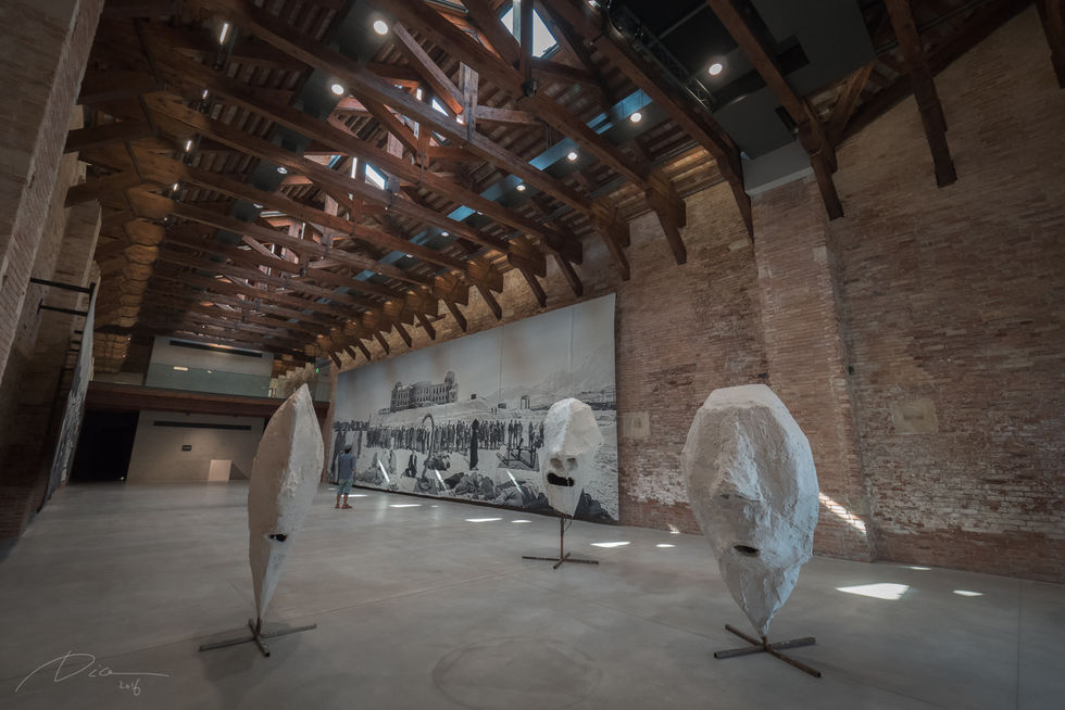 サンタ・マリア・デッラ・サルーテ教会の先にあるのがプンタ・デッラ・ドガーナで、倉庫を改装した現代美術館です。主にヴェネチア・ビエンナーレに出展された作品を中心に収蔵しています。改装はアンタダさんの設計で、空間と差し込む光を活かした構造が印象的。